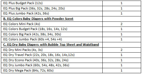Eq diaper dry newborn 644s eq077 eq diaper dry newborn 504s eq017a eq diaper colors xl 4484-p eq044 eq diaper dry jumbo pack s 4602s eq066 eq diaper pants xxxl 824s eq067 eq diaper pants xxxl 640s eq071 eq diaper dry jumbo pack m 4542s. EQ Dry Mega Pack Medium.