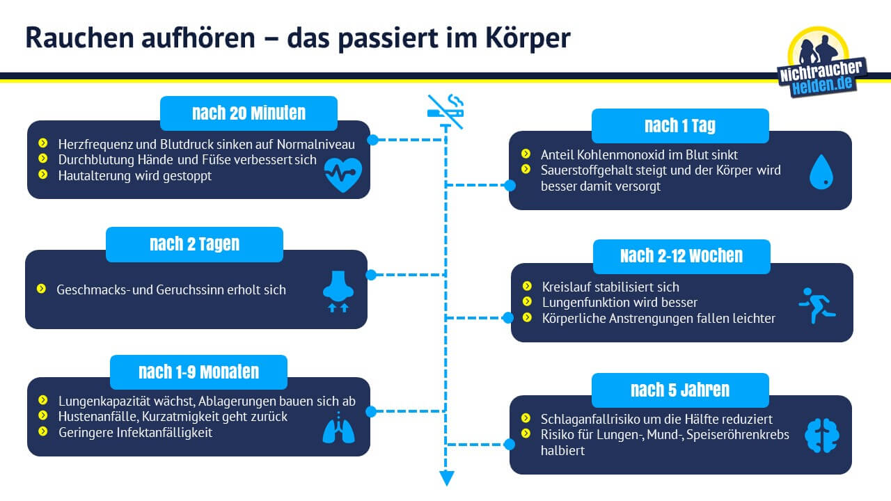 Mit der 60 Sekunden Methode nachhaltig und effektiv mit dem Rauchen aufhören. Alle Organe werden so wieder besser mit Sauerstoff versorgt. Auch wer bereits einen Rauchstopp plant hat manchmal Barrieren in seinem Kopf. Gesundes Zahnfleisch und feste Zähne sind die beste Belohnung für den Verzicht auf Nikotin. Wie Du so schnell wie möglich rauchfrei werden kannst und es mit dieser neuen Methode endgültig bleibst. Nach 20-30 Minuten Blutdruck und Puls sinken Hände und Füße werden wärmer. Mit dem Rauchen aufhören.