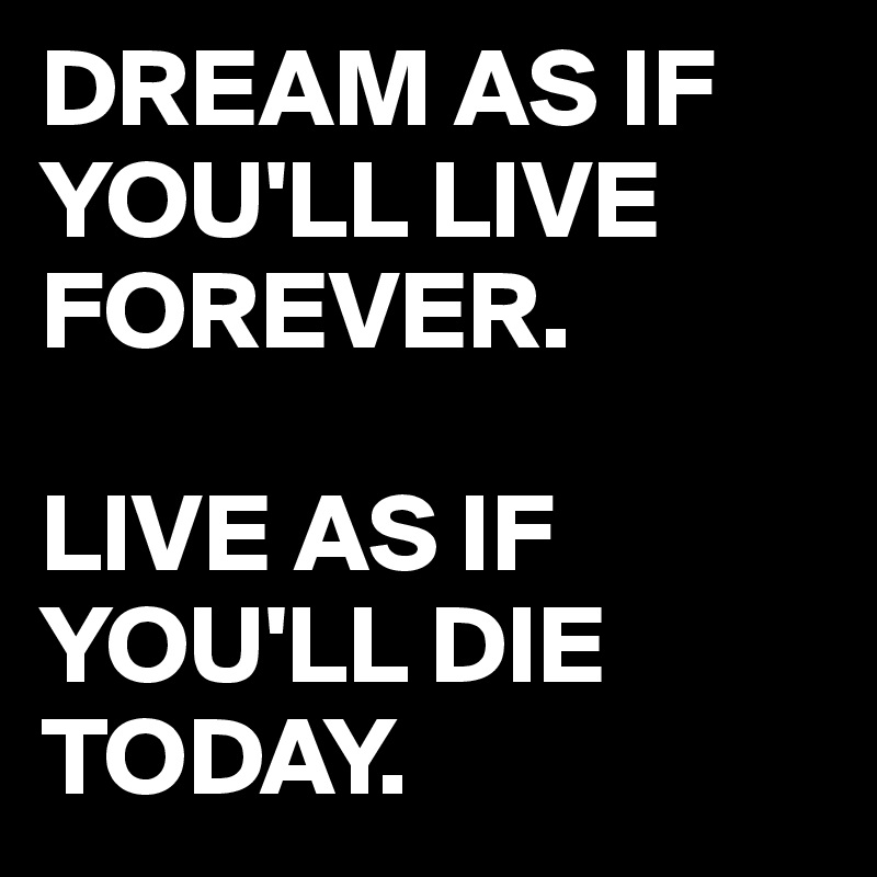Live as you will die today. Dream as if you will live forever talk about the goal that will take the best of you all your resources time and energy. Find some more interesting facts on what will you need to do to. And so they dream yes they dream as if they were to live forever. In the morning rain as it soaks you to the bone. Published on November 29 2015 under Images. From now on that will be my motto.