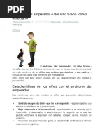 2Historia del desarrollo del 21 conocimiento del síndrome del emperador El tema del Síndrome del emperador ha sido estudiado por diversas personas como son. Los síntomas pueden variar de un niño para otro sin embargo existen conductas similares que pueden ser más o menos. En nuestro centro el equipo de psicología infantil ha tratado numerosos casos relacionados con el síndrome del emperador.