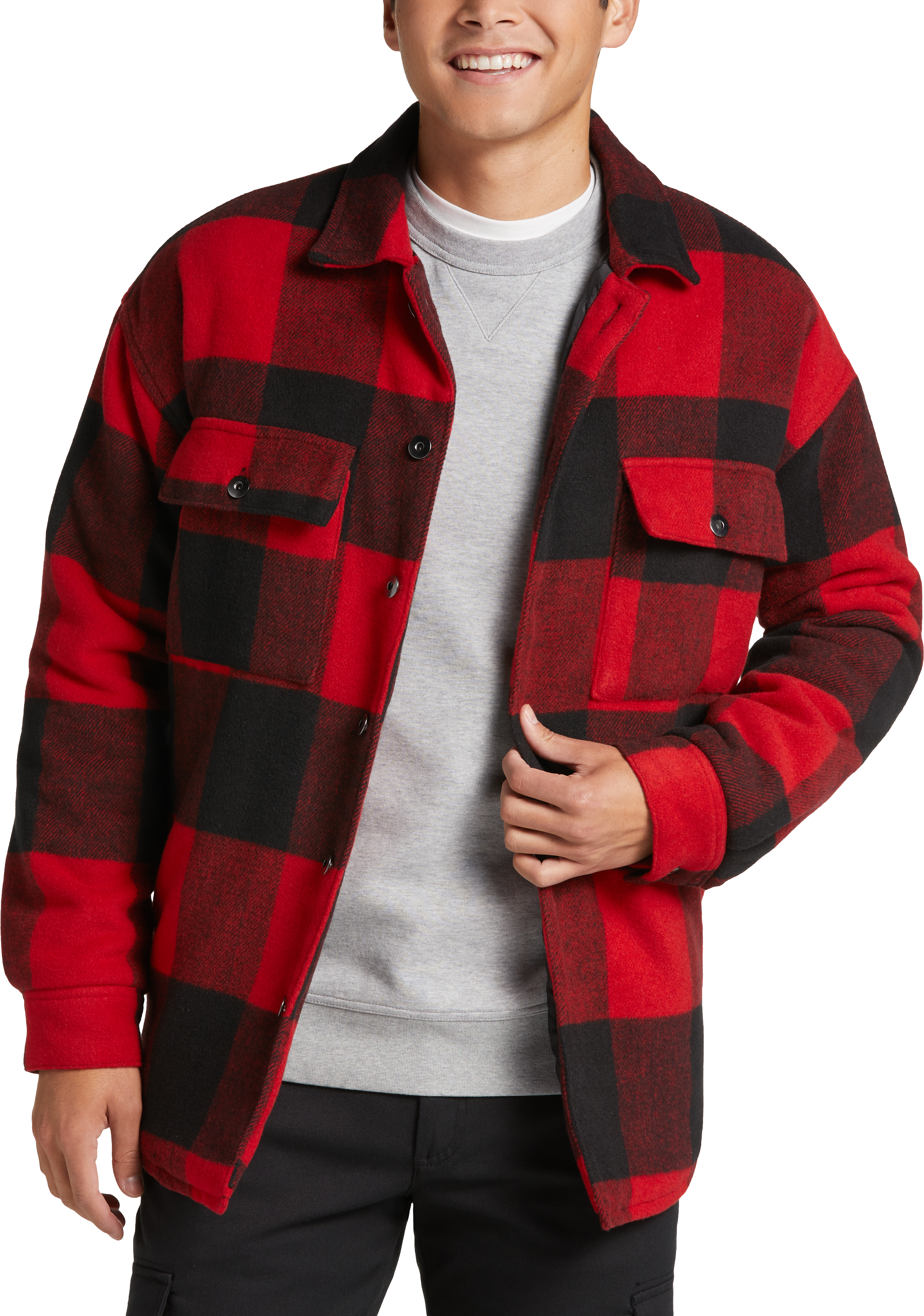 Mens red shirt jacket. Red Leather Shirt Jacket For Men. If you want to style a jacket in summer try our red bomber jackets or red varsity jackets. SIX WEEK RESIDENCY Fleece Lined Plaid Flannel Shirt Jacket 250.